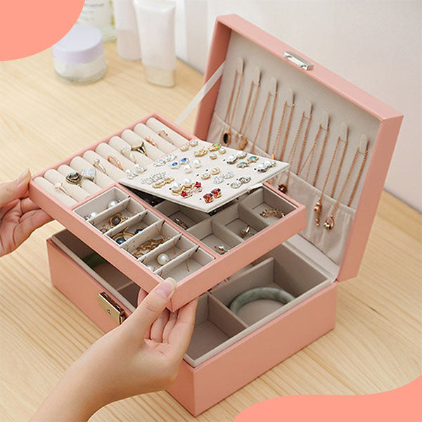 Bright&Shine™ to wspaniałe pudełko na biżuterię, dzięki któremu zawsze będziesz miała perfekcyjnie ułożoną kolekcję modnych akcesoriów. Świetnie nadaje się do przechowywania różnorodnej biżuterii, bransoletek, naszyjników, kolczyków, zegarków i pierścionków. Dzięki mniejszym ruchomym częściom Bright&Shine™ zapewnia doskonałą przejrzystość i rozdzielenie poszczególnych akcesoriów. Wykonane jest z wysokiej jakości materiału, a jego wnętrze ma miękką powierzchnię, która zmniejsza zużycie biżuterii. Elegancki i funkcjonalny design to idealny wybór dla wszystkich pasjonatek mody, które pragną doskonale posortować szlachetną biżuterię, aby nie plątała się ona pomiędzy sobą. Dzięki wygodnemu rozmiarowi świetnie sprawdza się w podróży, a jego łatwe otwieranie na przycisk gwarantuje, że modne dodatki pozostaną na swoim miejscu. Dzięki Bright&Shine™ zawsze będziesz miała wystarczająco dużo miejsca na starannie zaaranżowaną kolekcję biżuterii.