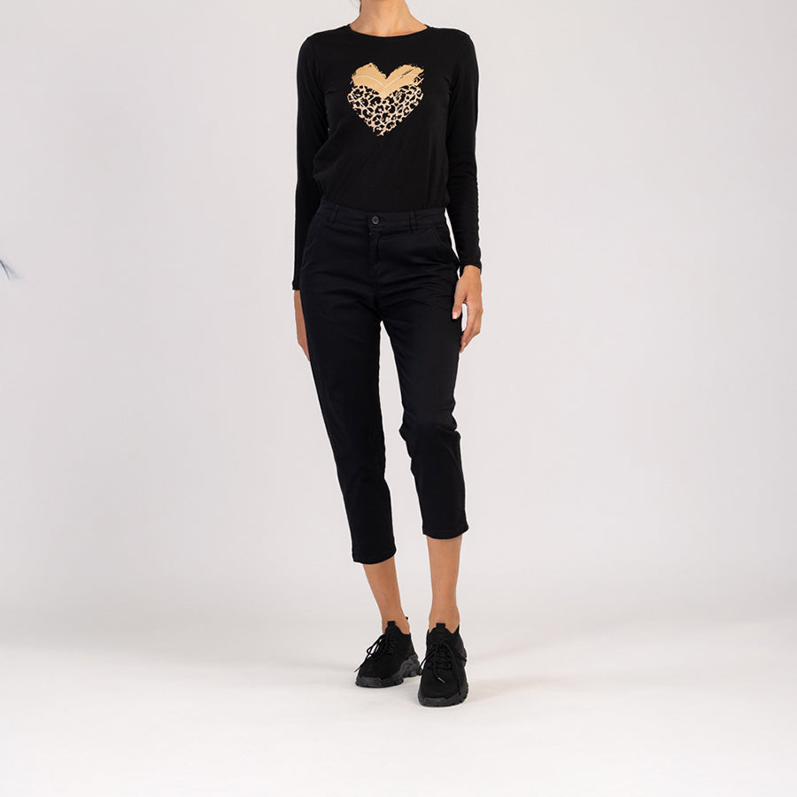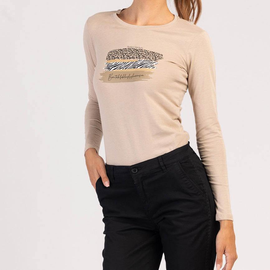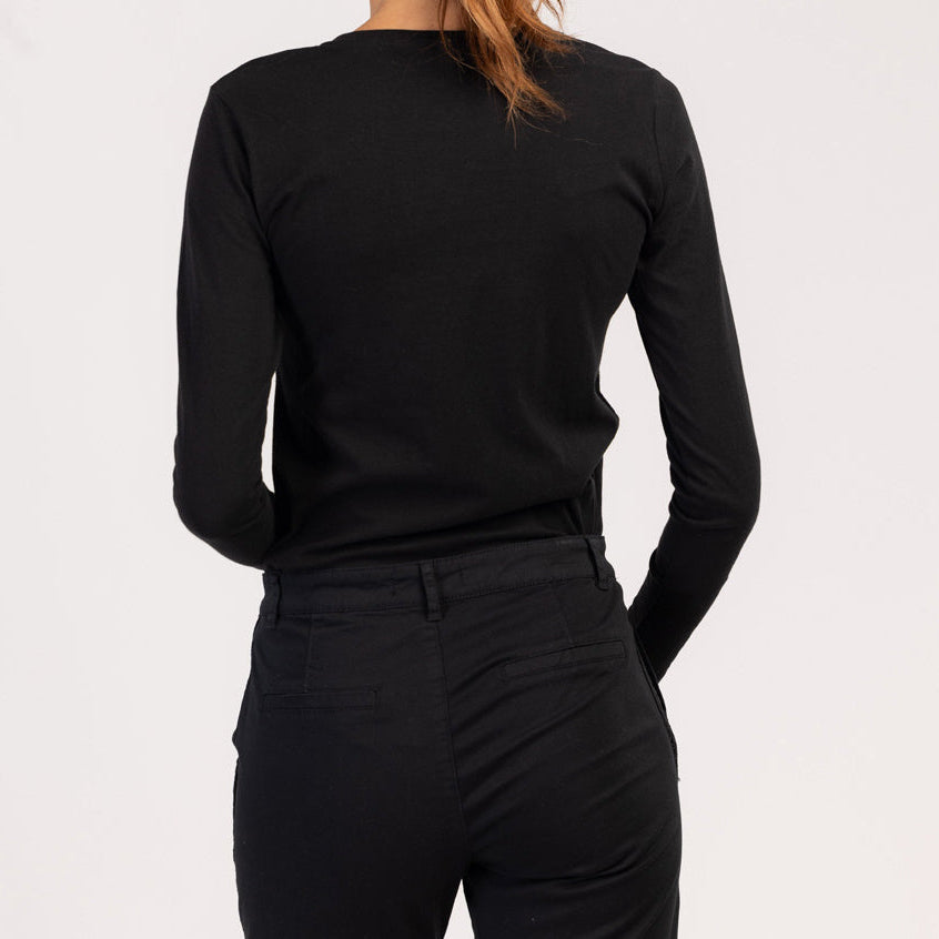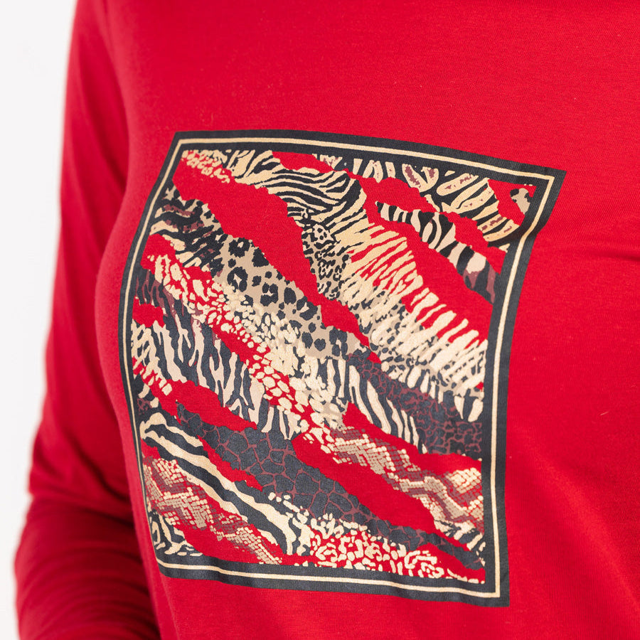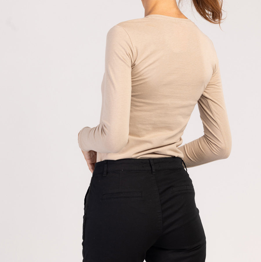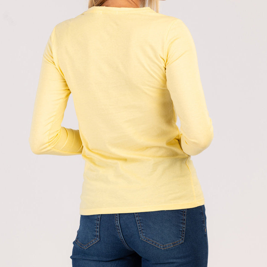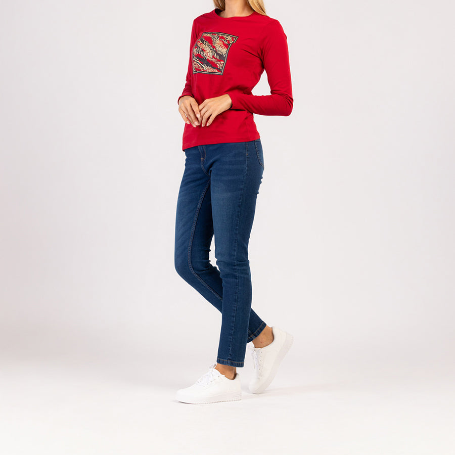 Długorękawowy bawełniany T-shirt, który łączy wygodę i nowoczesny wygląd, idealny do noszenia na co dzień. Miękka, oddychająca tkanina wygodnie przylega do ciała, a klasyczny krój zapewnia idealne, nieograniczone dopasowanie.
