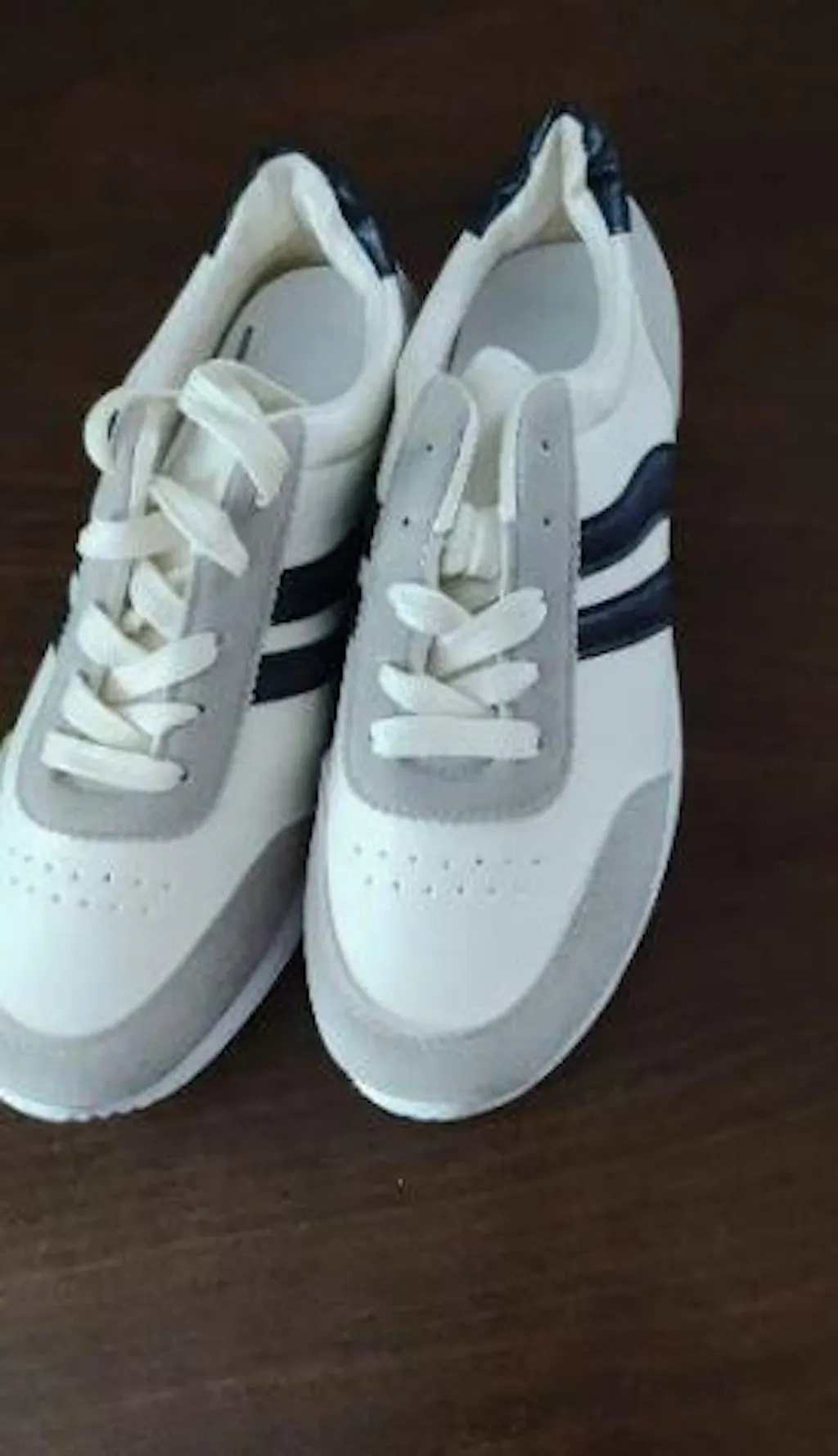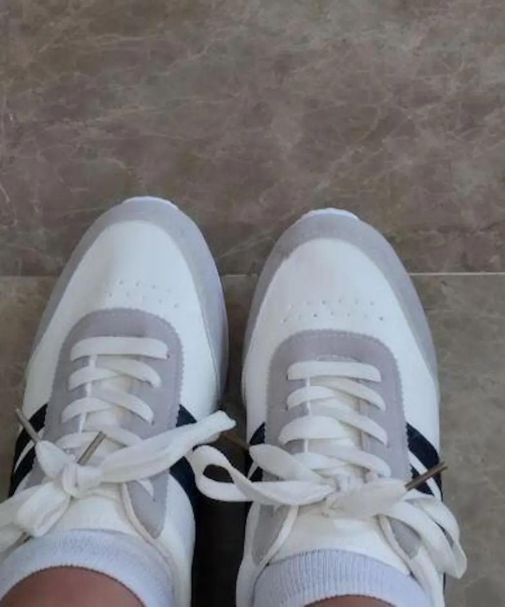 Damskie, codzienne, białe trampki z eleganckimi niebieskimi akcentami, zaprojektowane z myślą o komforcie noszenia o każdej porze roku. Lekkie i przewiewne, z miękką gumową podeszwą, idealne do chodzenia, podróżowania i ćwiczeń fitness. Niski wykrój i sznurowadła zapewniają stabilność i stylowy wygląd.