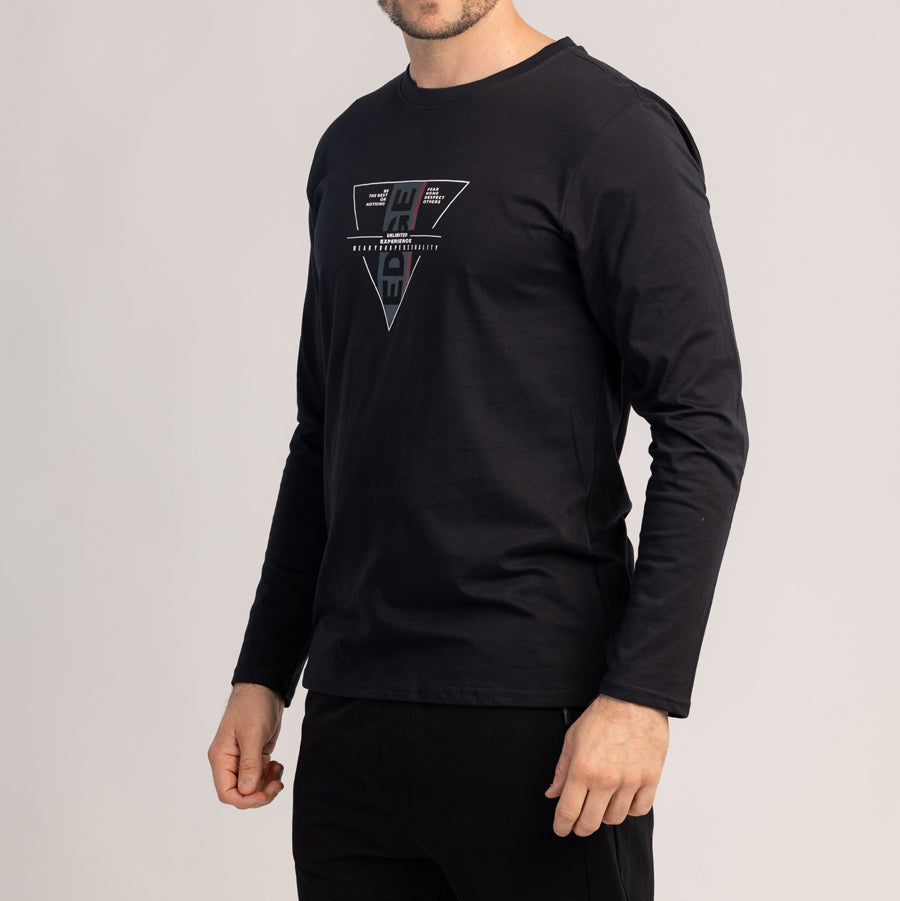 Długoobiegowa bawełniana koszulka łącząca wygodę i nowoczesny wygląd, idealna do noszenia na co dzień. Miękki, oddychający materiał jest przyjemny w dotyku, a klasyczny krój zapewnia idealne, nieograniczone dopasowanie.