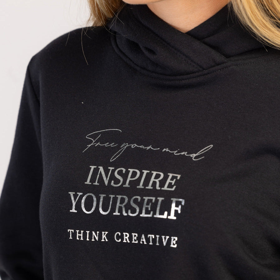 Ta bluza z kapturem z modnym hasłem to idealny wybór na chłodniejsze dni i chwile relaksu. Wykonana z miękkiej mieszanki bawełny, z przyjemnym futerkiem wewnątrz, zapewnia ciepło i miękkość za każdym razem, gdy ją założysz.
