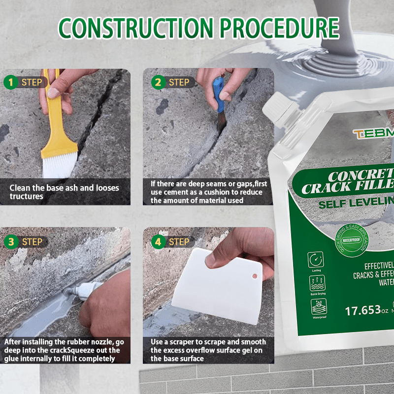 Szybkoschnący uszczelniacz samopoziomujący zapewnia trwałe, wodoodporne wypełnienie pęknięć w betonie.
