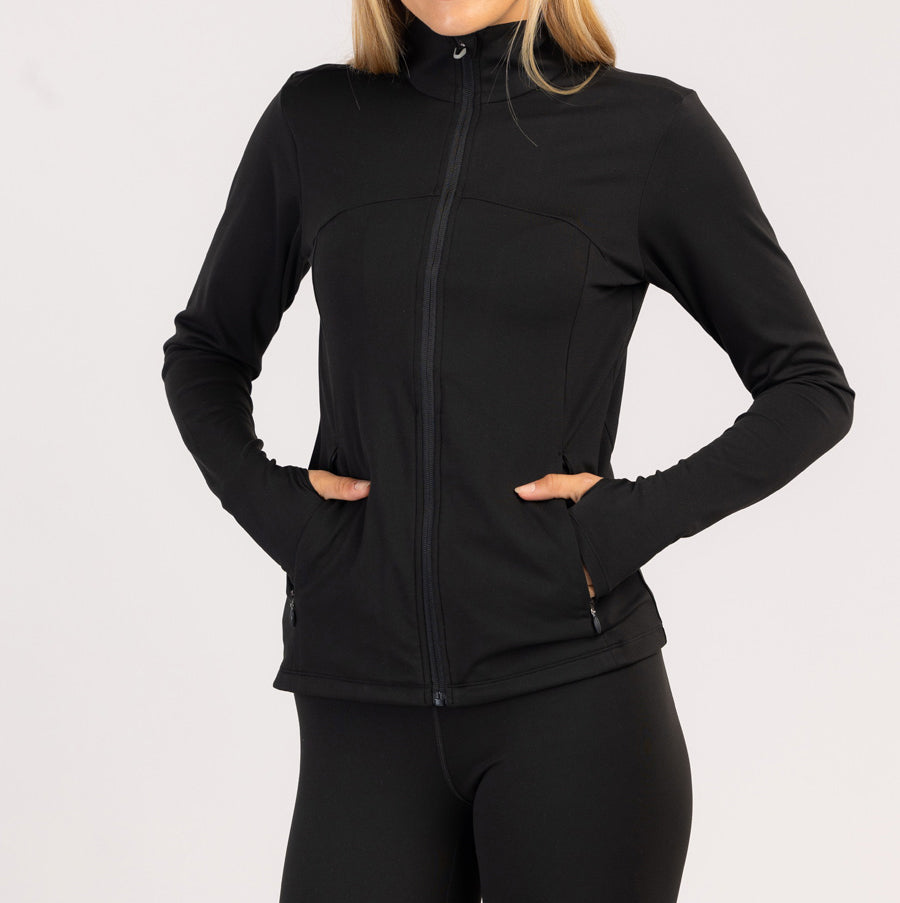Ta damska sportowa kurtka z długim rękawem łączy w sobie wygodę, funkcjonalność i nowoczesny wygląd. Wykonane z miękkiego, elastycznego materiału, który zapewnia maksymalną swobodę ruchów, idealne do uprawiania sportu, spacerów lub po prostu wygodnego noszenia na co dzień.