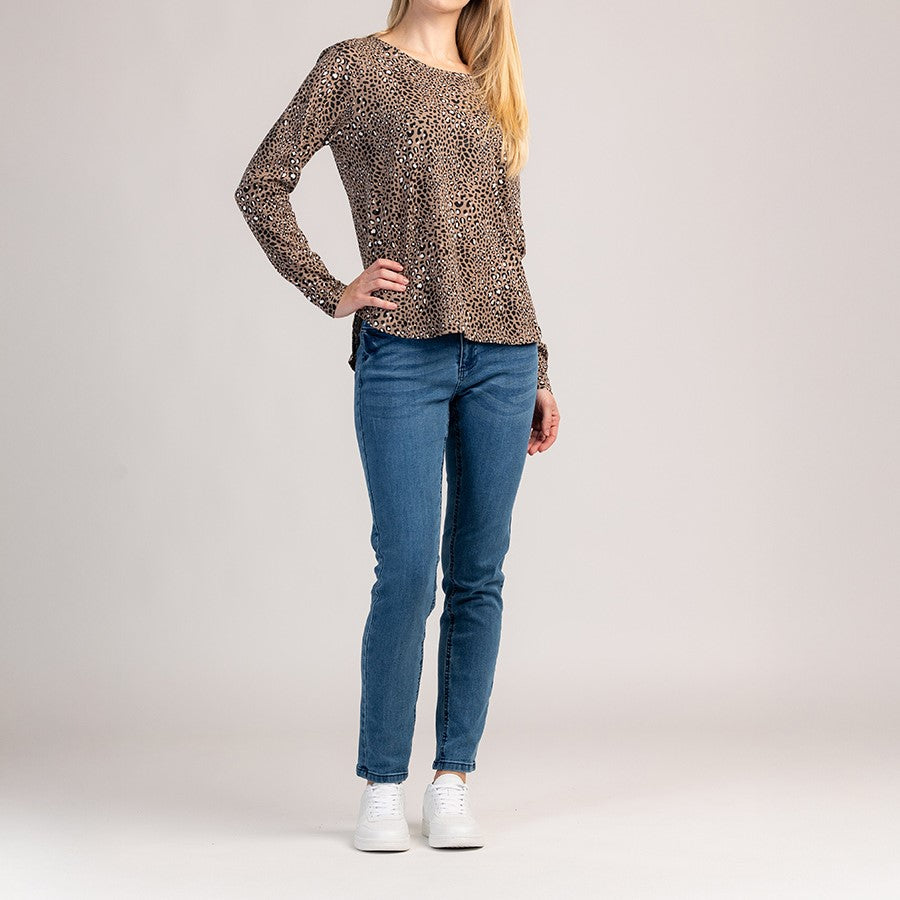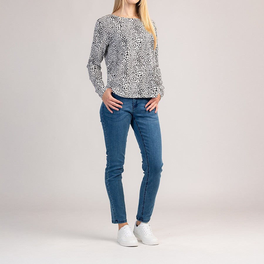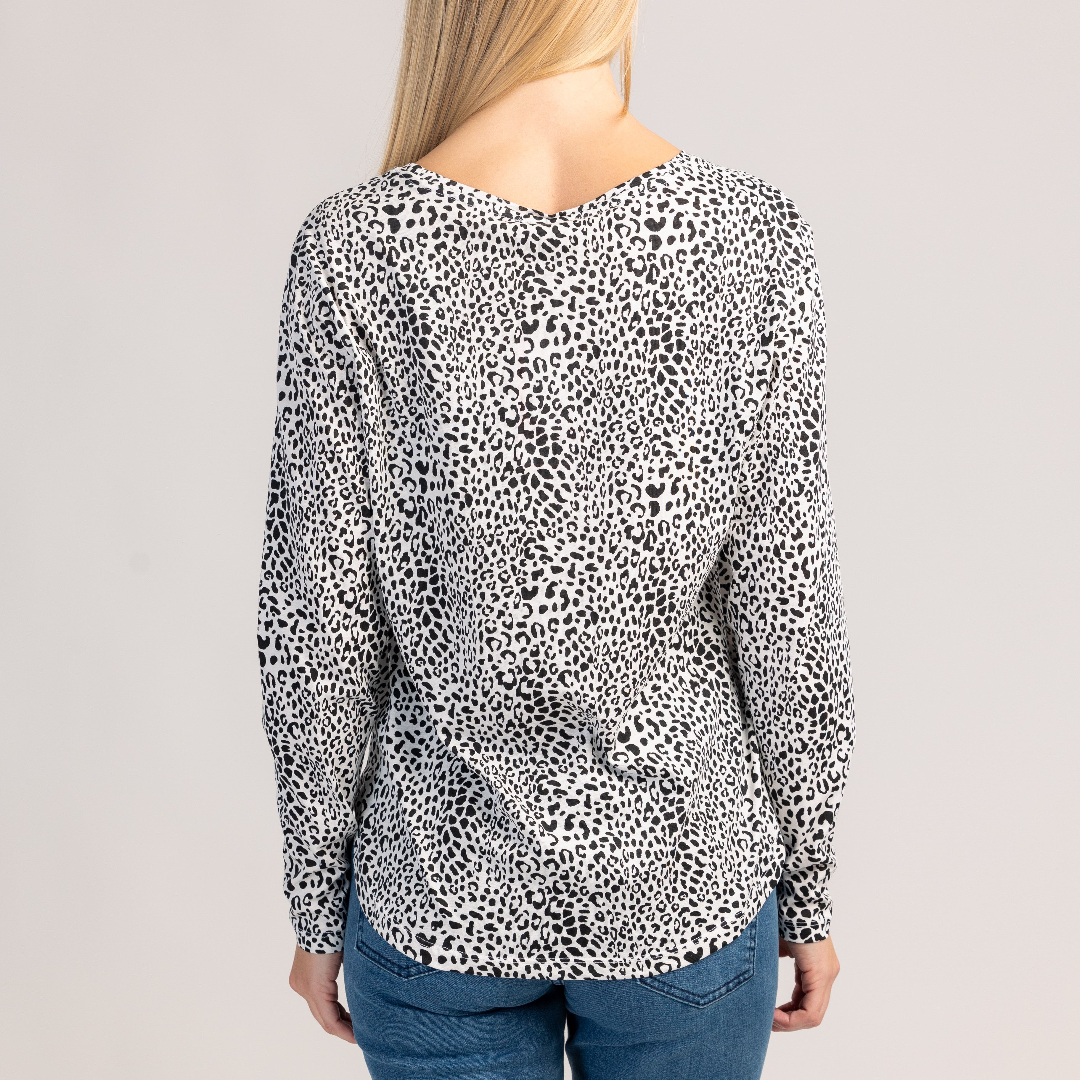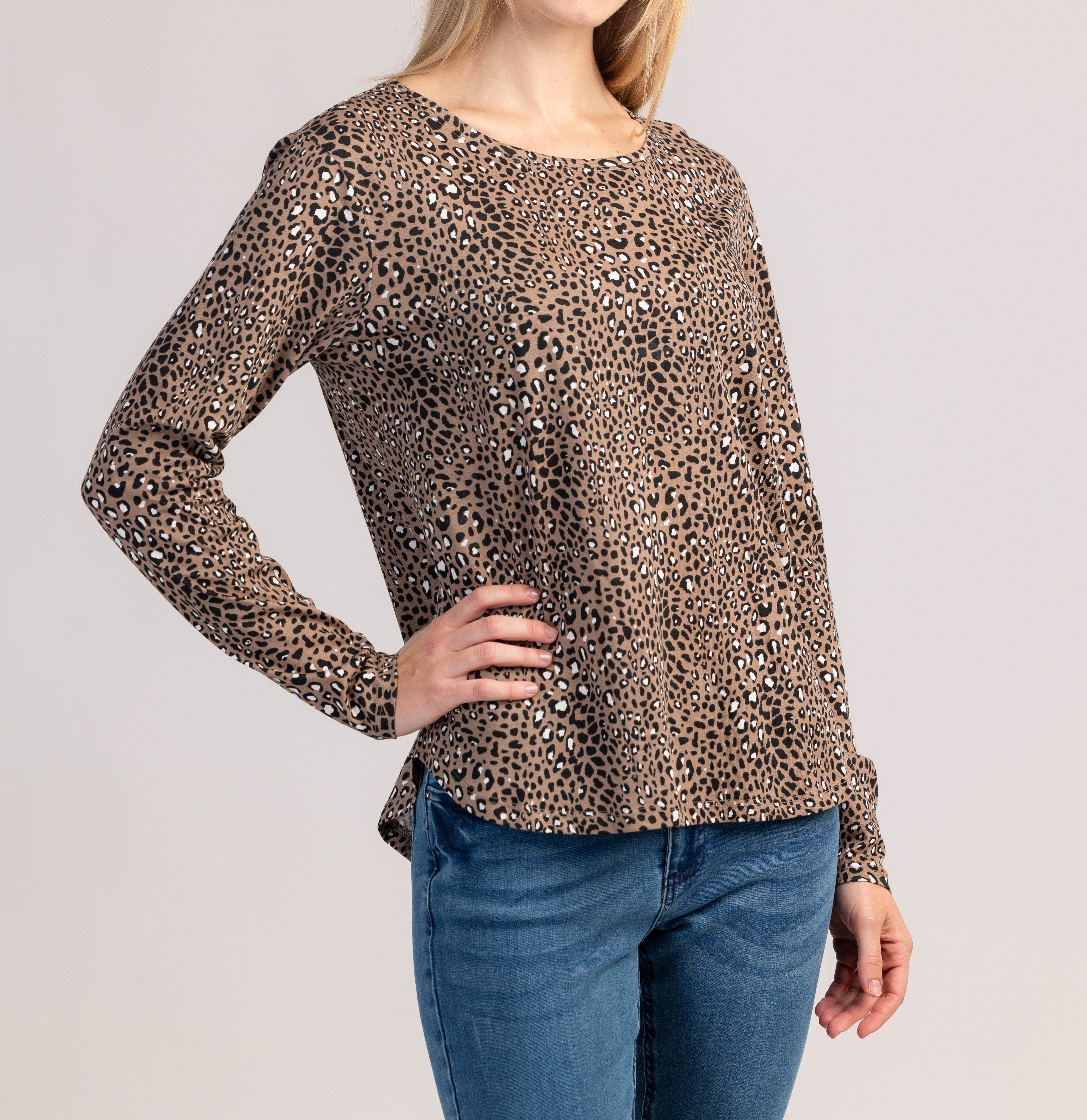 Długorękawowy bawełniany T-shirt, który łączy wygodę i nowoczesny wygląd, idealny do noszenia na co dzień. Miękki, oddychający materiał wygodnie otula skórę, a klasyczny krój zapewnia idealne, nieograniczone dopasowanie.